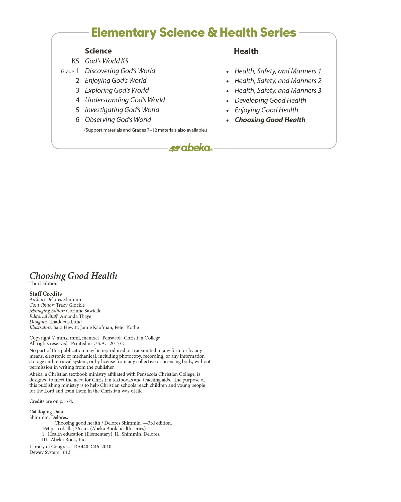 Abeka Product Information Choosing Good Health