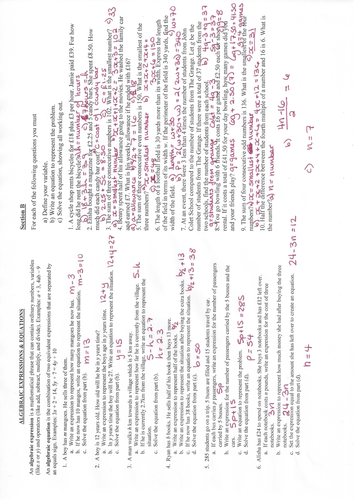 Ks3 Worksheet L5 Interpreting Expressions Teaching Resources